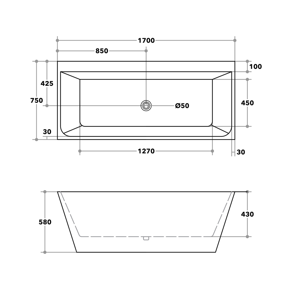 BACK TO WALL BATHTUB