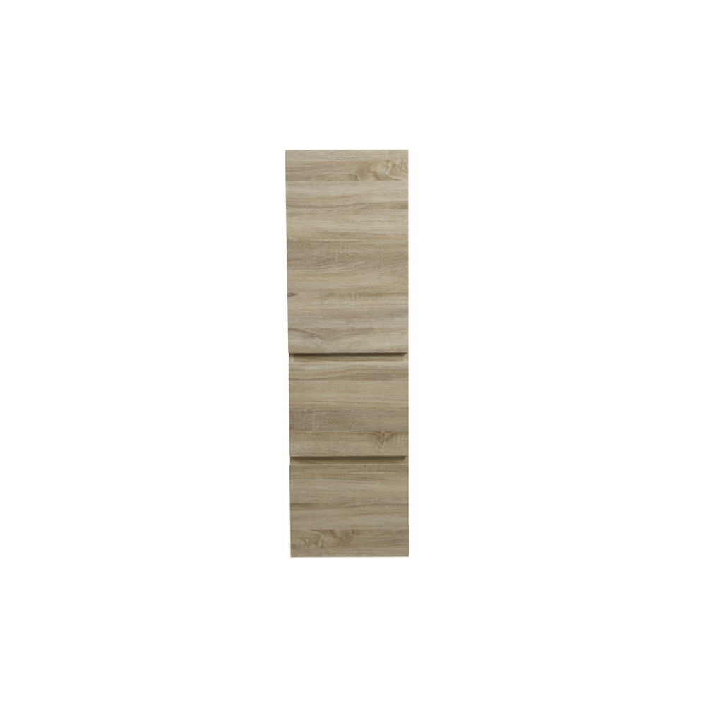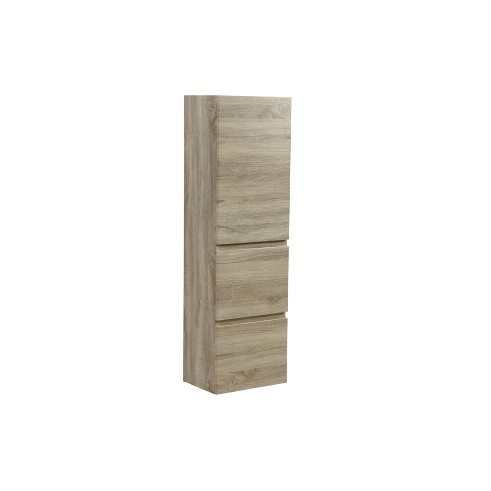 “WHITE OAK PVC VACUUM FILMED MDF BOARD PRODUCT CODE: B4030W-WO WALL HUNG TALL BOY ONE DOOR & DOUBLE SOFT CLOSING DRAWERS