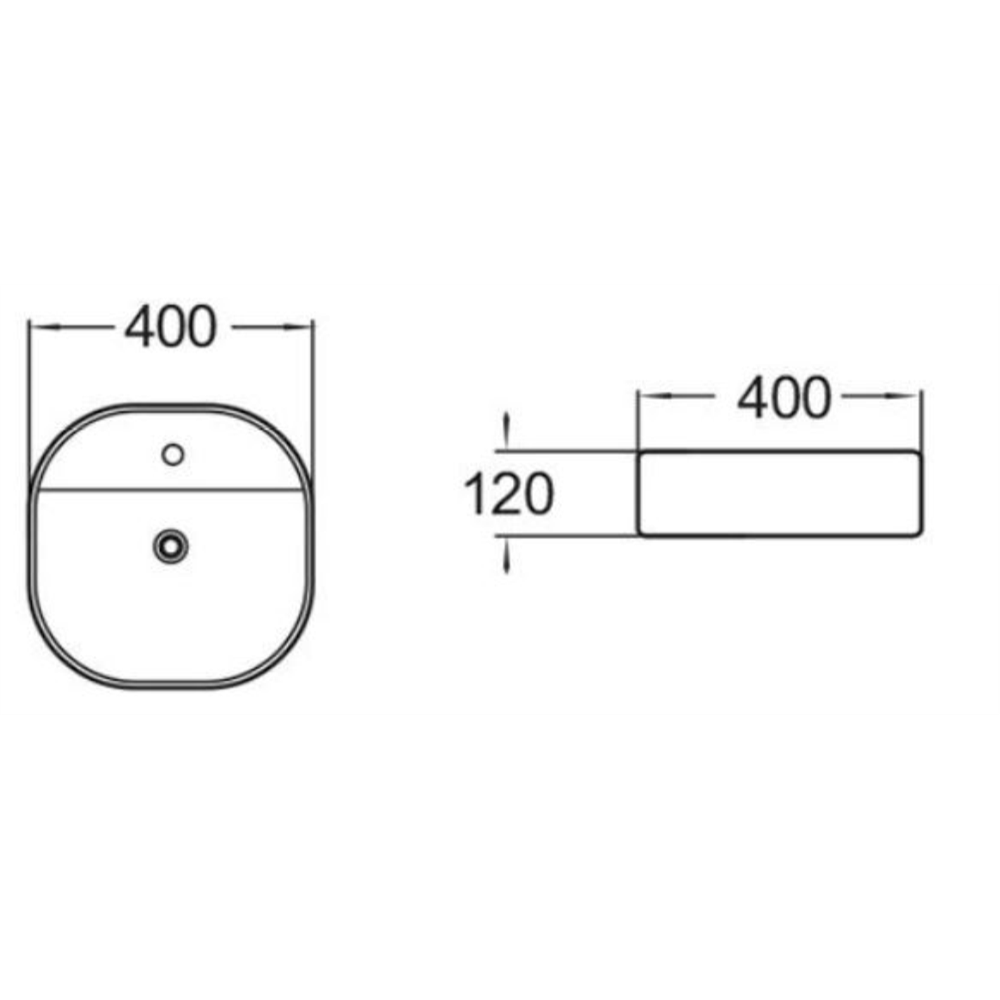 PA4040TH “SIZE:400*400* 120MM ABOVE COUNTER BASIN WASTE: 32MM NON-OVERFLOW”