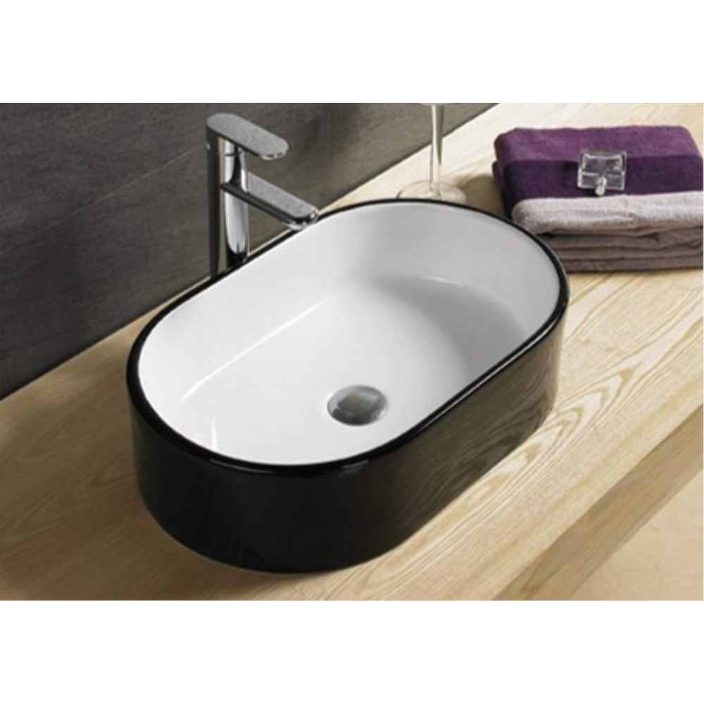 “GLOSS BLACK AND WHITE ABOVE COUNTER ART BASIN