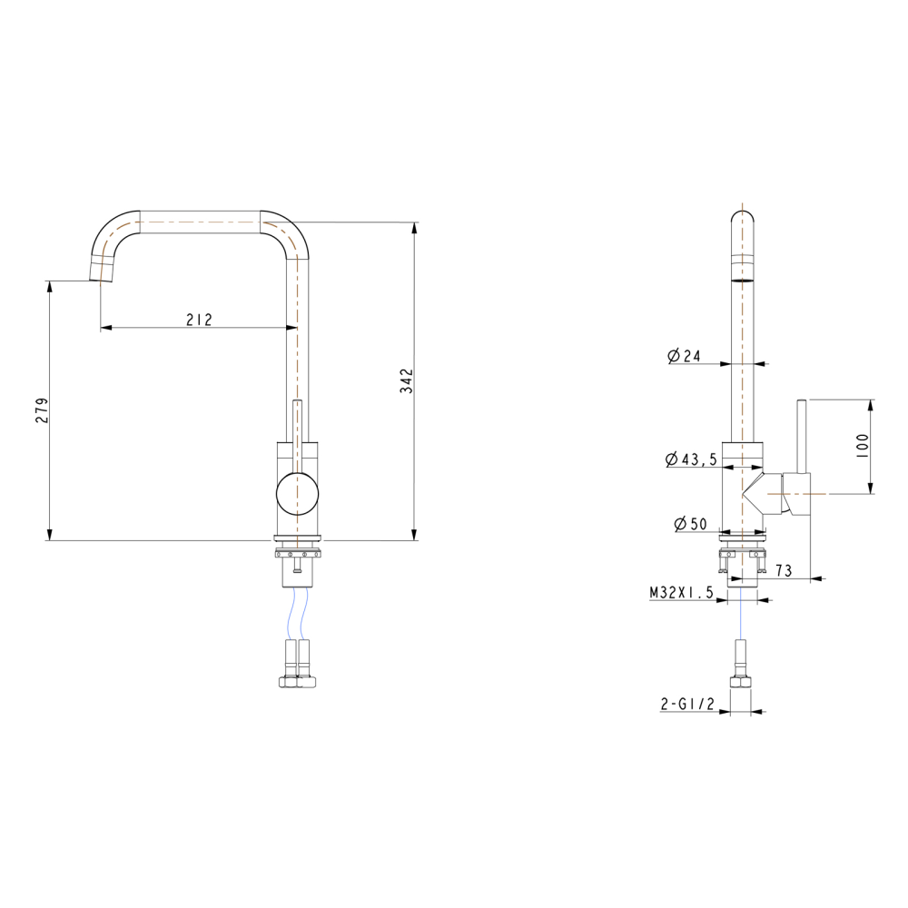- With stainless steel hot & cold water hoses