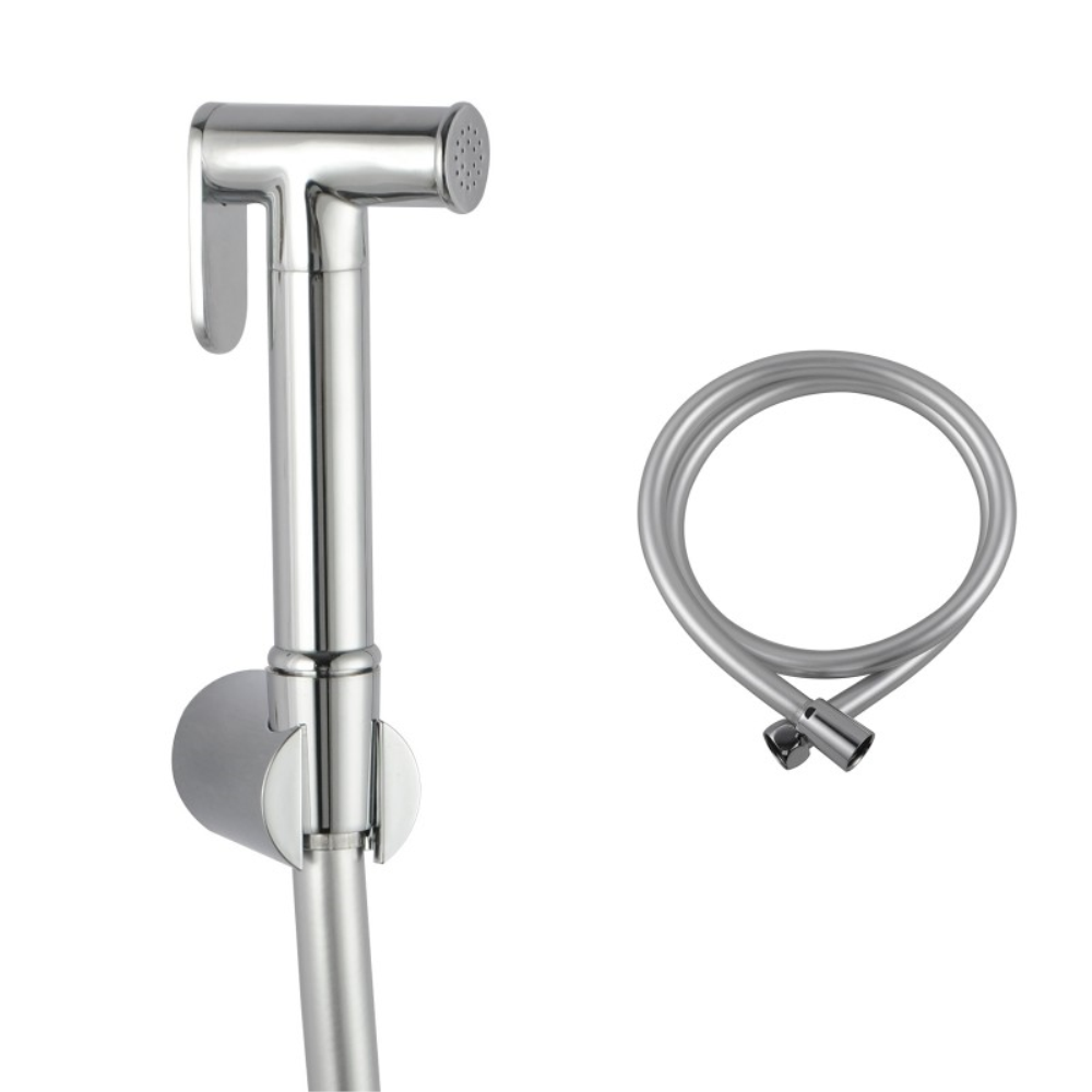 This toilet bidet spray is chrome plated and made of brass. This product also include a brass shower holder and PVC shower hose.